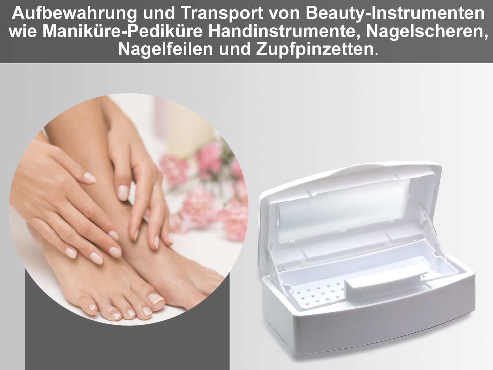 InstrumenteNRW steht für Qualität, Sicherheit und Funktionstüchtigkeit. Einsatzbereich: Aufbewahrung und Transport von Beauty-Instrumenten wie Maniküre-Pediküre Handinstrumente, Nagelscheren, Nagelfeilen und Zupfpinzetten.