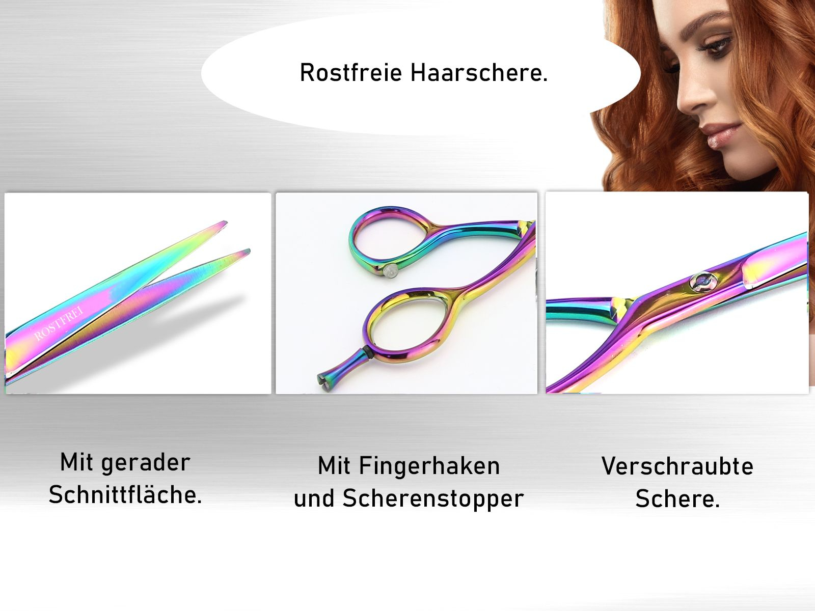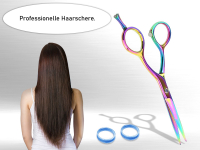 Haarschere Friseur Schere zum Haare schneiden. Die Gesamtlänge beträgt ca. 14 cm (inkl. Fingerhaken) und die Schnittfläche ca. 5,5 cm. Diese Haar-Schere ist aus rostfreiem Edelstahl gefertigt und wurde mit einer Titanbeschichtung versehen. Hohe Verschleißresistenz. Präzise geschliffen. Mit Schraube zur Nachjustierung der Schnittstärke.