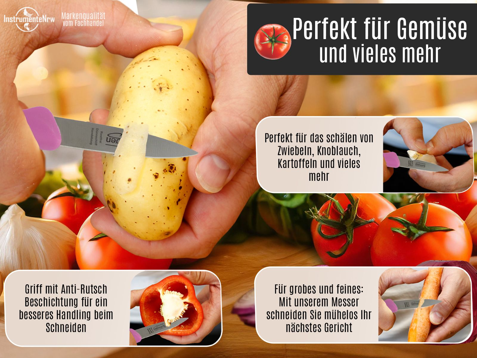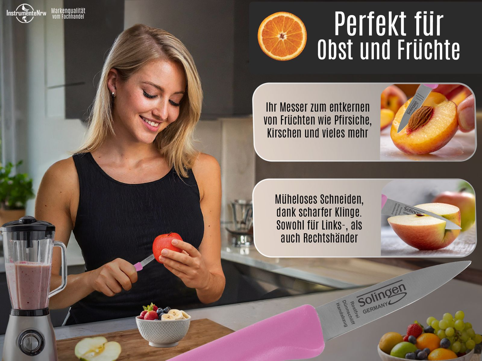 Gemüsemesser Schälmesser aus Solingen Messer Küchenmesser 2er Set Gerade Scharfes Allzweckmesser Pink Made in Germany Edelstahl Rostfrei Dünnschliff Handabzug Spülmaschinengeeignet