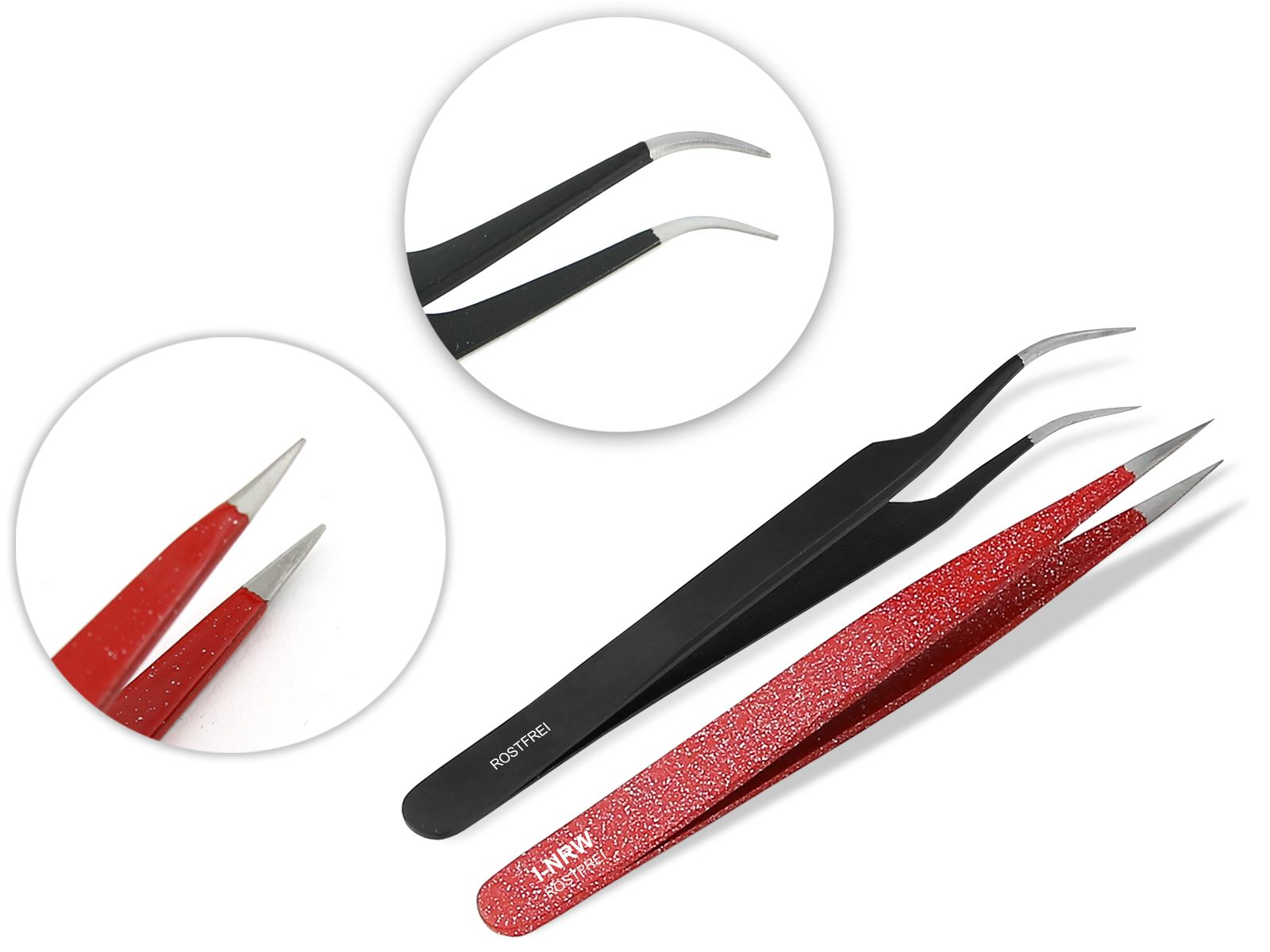 - Bestehend aus folgenden Pinzetten: 2 x Spitz