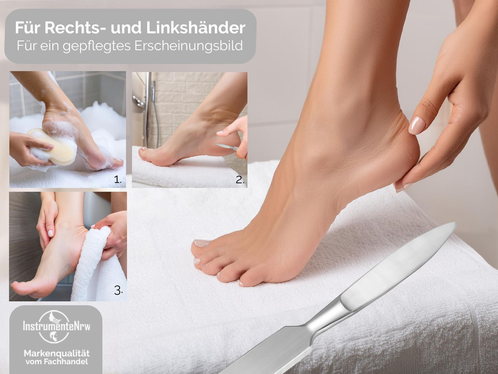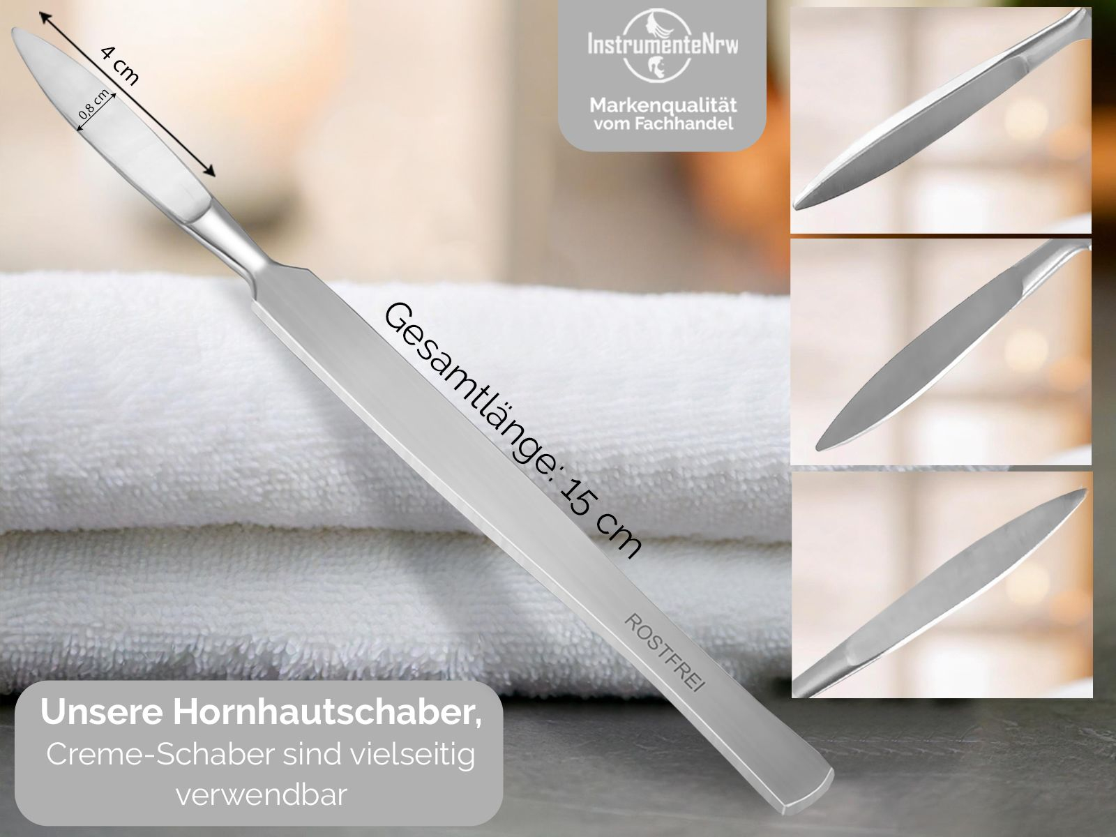 Wer kennt es nicht? Hornhaut an den Füßen. Mit unseren InstrumenteNRW Pediküre Hornhautschaber ist dies nun Geschichte. Eine echte alternative zum Hornhauthobel. Mit dem stumpfen Hornhautentferner entfernen Sie Hornhaut an den Füßen, wie kein Zweiter. (ACHTUNG es hat die Form eines Skalpells, es ist jedoch keines, da die Messerschneide DICK ist, die Messerklinge ist sehr stumpf und dick. Sie dient nur zum abschaben der Creme und der Hornhaut). Ganz einfach und ohne großen Aufwand. Zudem ist der Hornhaut Schaber nachhaltiger als gewöhnliche Pflegeinstrumente.