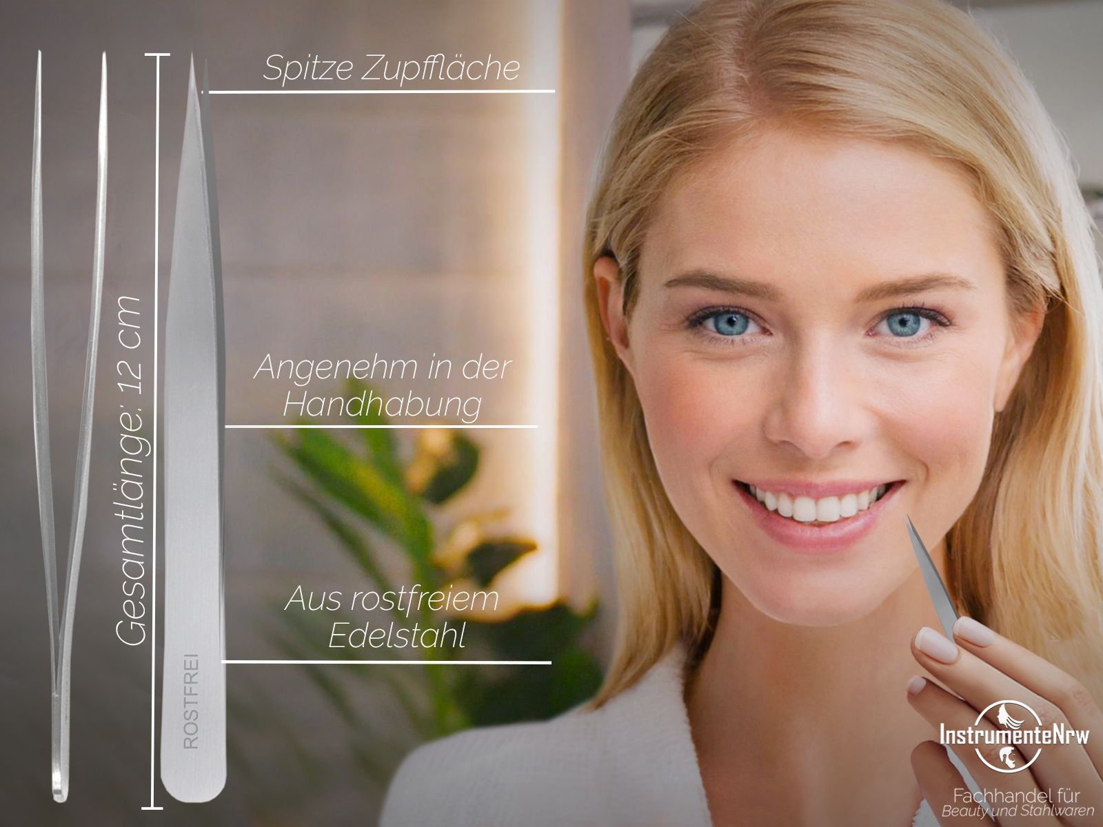 Die Gesamtlänge der Pinzette beträgt 12 cm. Der Pinzettenkopf ist Spitz. Qualität von Perfection by InstrumenteNRW mit Firmensitz in Deutschland.