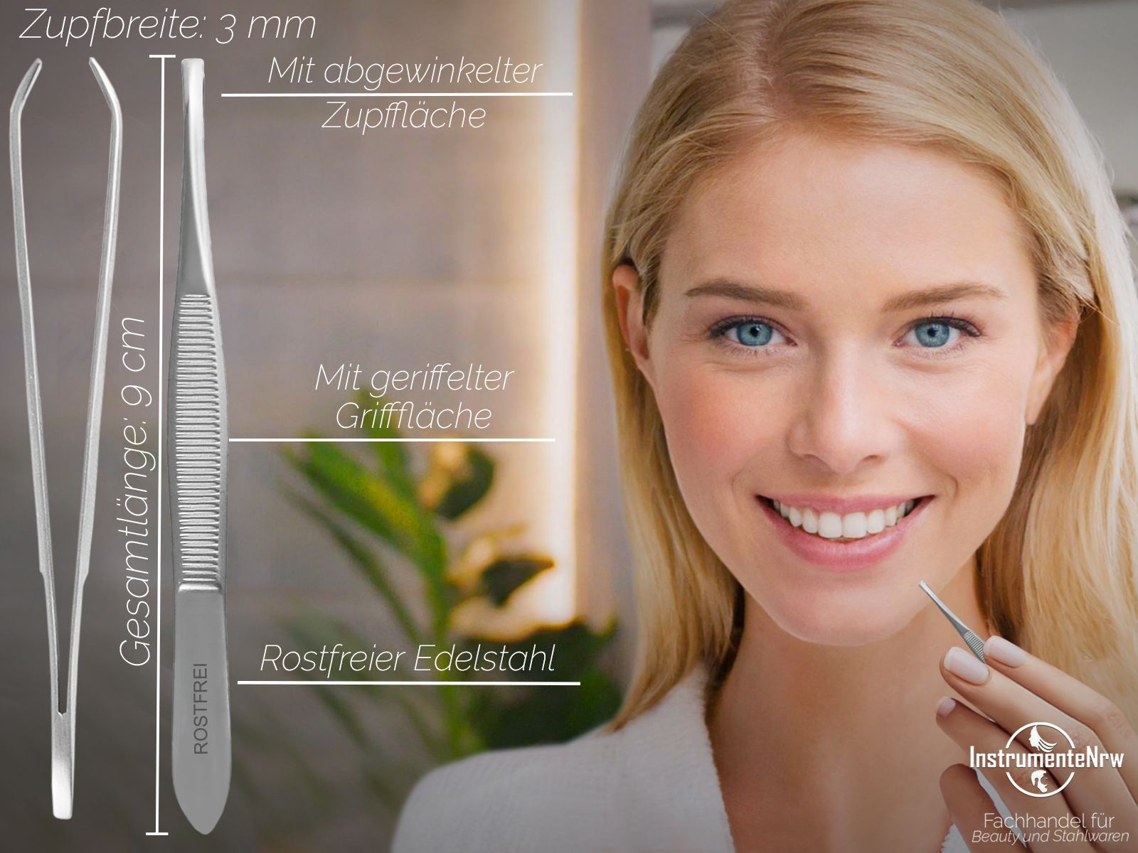 Zupfpinzette Gerade für die Gesichtspflege zum Zupfen von kleinsten Härchen an Augenbrauen, Bart und Gesichts Haaren