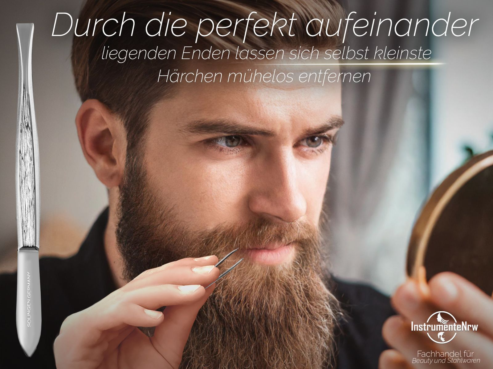 Zupfpinzette aus Solingen Gerade für die Gesichtspflege zum Zupfen von kleinsten Härchen an Augenbrauen, Bart und Gesichts Haaren