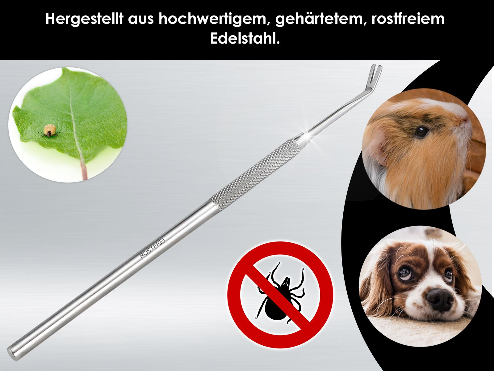Profi Zeckenhaken aus hochwertigem, gehärtetem, rostfreiem Edelstahl.