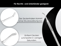 Profi Zeckenhaken aus hochwertigem, gehärtetem, rostfreiem Edelstahl.