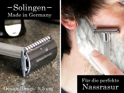Premium Rasierhobel aus Solingen für Männer Nassrasierer Rasierer Made in Germany mit Edelstahl Griff für eine sanfte und präzise Rasur